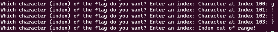 Oh my...this looks fun, we can sit here for an unknown amount of time to figure out the flag or...we can find the upper bound of the index and then maybe just maybe save our sanity.