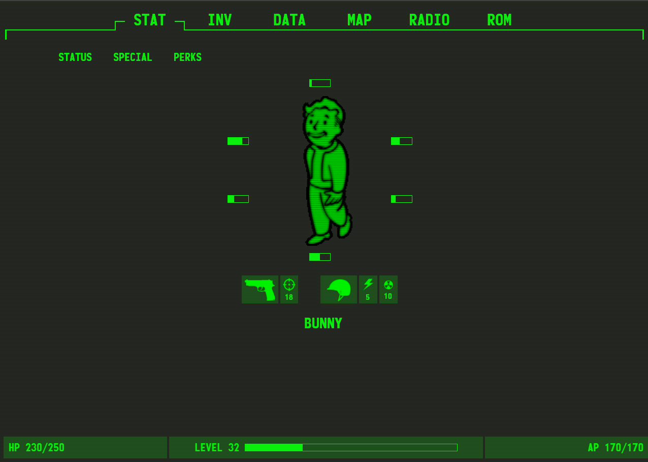 When you first arrive on the site you are greeted with Vault Boy (the best mascot ever). You can check your current level, what special powers you have and your perks. Neither of those provide anything worthwhile. Navigating to the other pages leads to nothing as well.