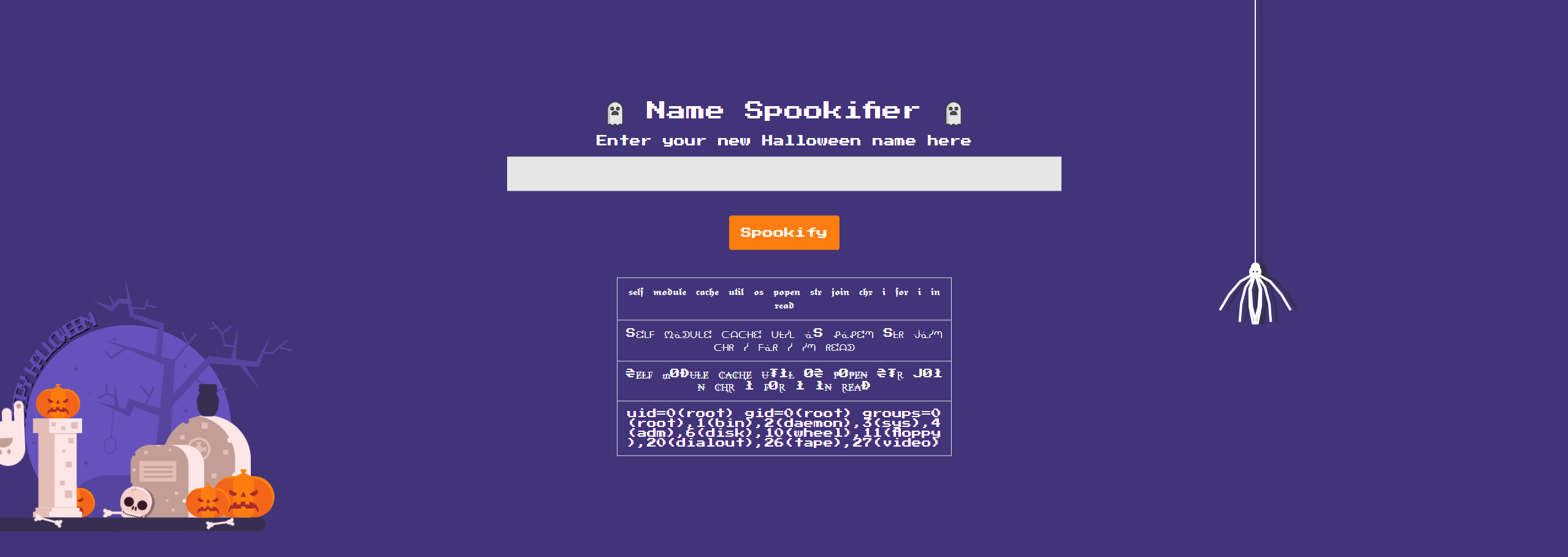 There's a new trend of an application that generates a spooky name for you. Users of that application later discovered that their real names were also magically changed, causing havoc in their life. Could you help bring down this application?